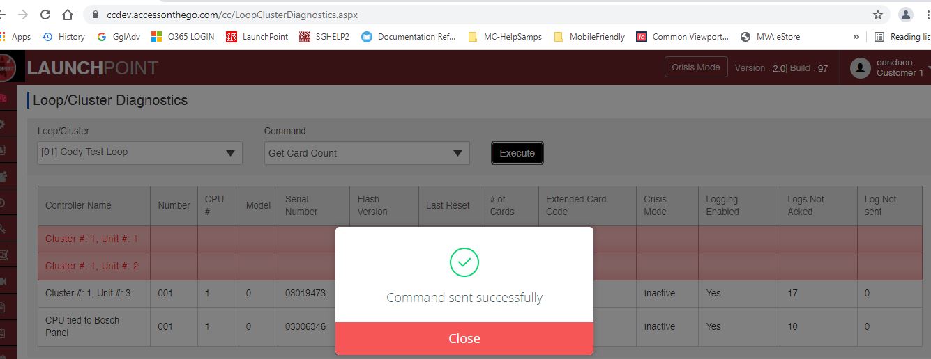 IMPORTANT: See the Crisis Mode topic for instructions about activating Crisis Mode using the Crisis Mode Button to issue a Crisis Mode Command to all the loops/clusters in the system simultaneously . Sending a crisis mode command from the Diagnostics page can only be done for one loop/cluster at a time, which may not be as quick as you need in a real crisis situation.